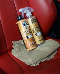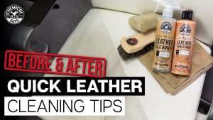 - Comece por limpar a sujidade, gordura, e óleos corporais das superfícies de couro com o Leather Cleaner.