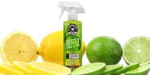 Qualquer fabricante de ambientadores pode sintetizar um aroma cítrico bruto e industrializado, mas apenas a Chemical Guys mistura Zesty Lemon Lime com extractos de citrinos para uma experiência autêntica de essência cítrica. A Chemical Guys fabrica todos os ambientadores premium com ingredientes naturais, óleos essenciais refinados, e bases à base de água que não mancham os tecidos e nem deixam resíduos pegajosos dentro do seu automóvel